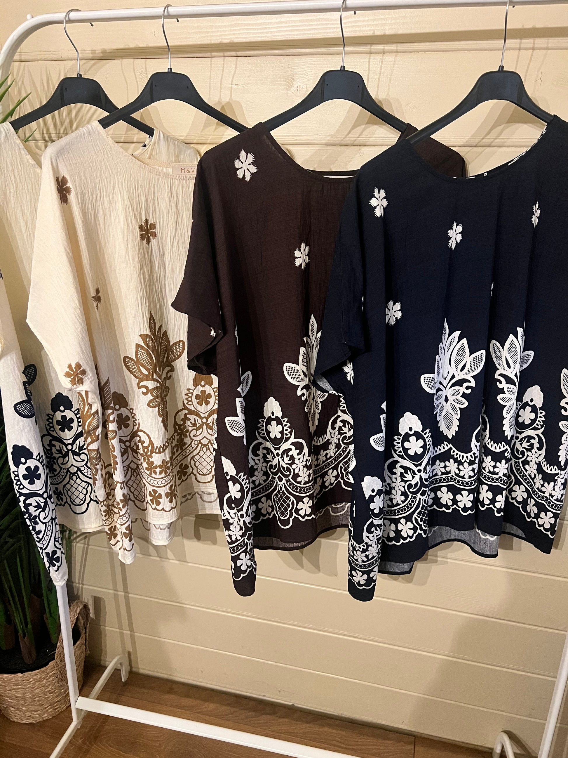 SOPHIE LINEN BLEND PRINTED TOP (8-18)
